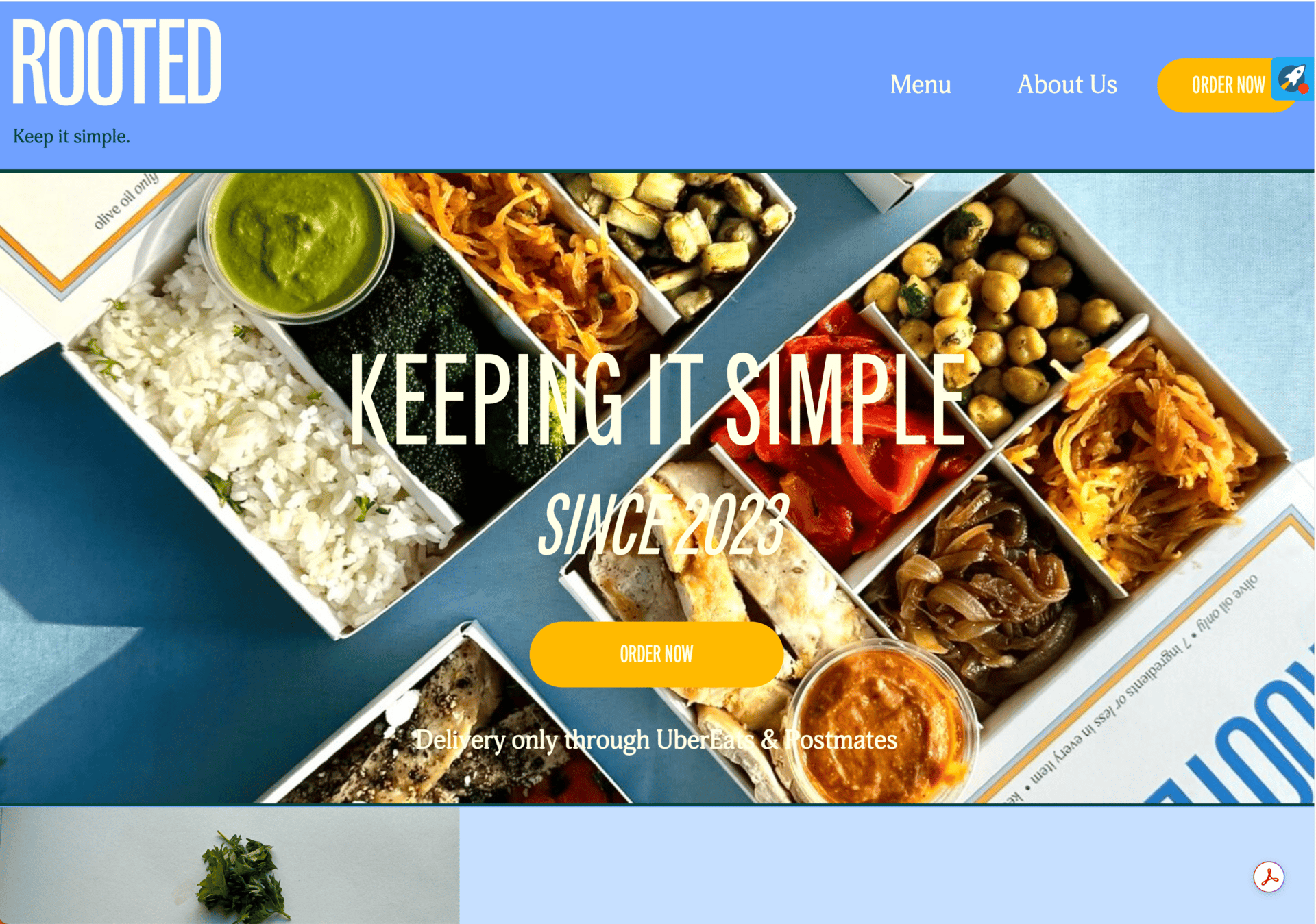 Summary: Rooted Restraunts is a fast-casual lunch spot made using only seven ingredients or fewer. Customers are offered different-sized plates across starches, vegetables, proteins, and sauces.