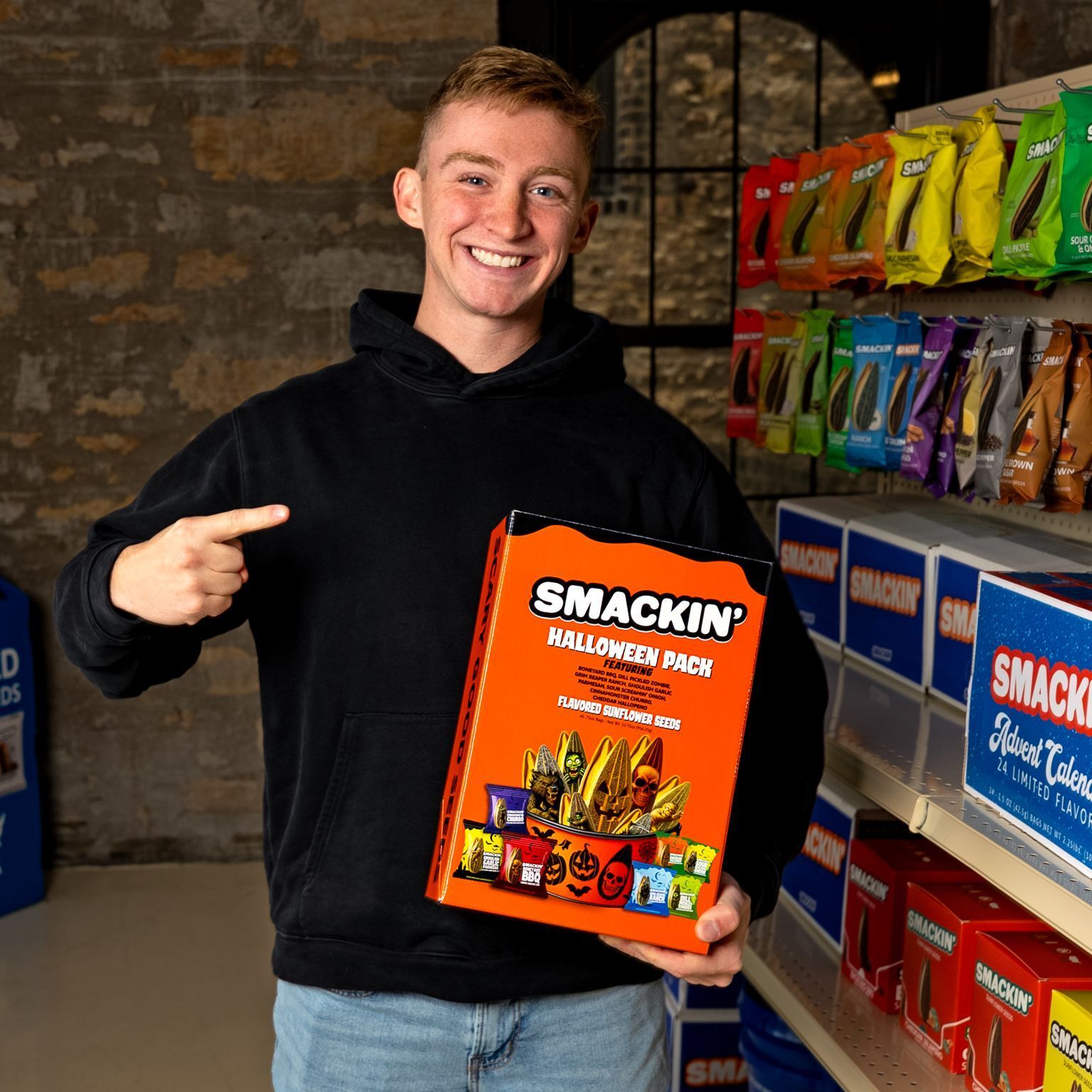 Smackin’ co-founder Cole Schaefer poses with their Halloween multipack